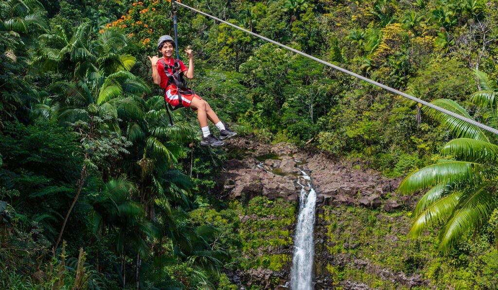 Botanical World’s zipline is integrated into a fragrant botanical garden. This means that as you walk from one line to the next, you’ll meander past a variety of flowers and even a massive hedge maze. The guides aren’t just there for safety; they’ll also share fun facts about the local flora, making it a blend of adventure and education. Experience an exhilarating zip line that offers stunning views of the breathtaking Kamae’e Falls.