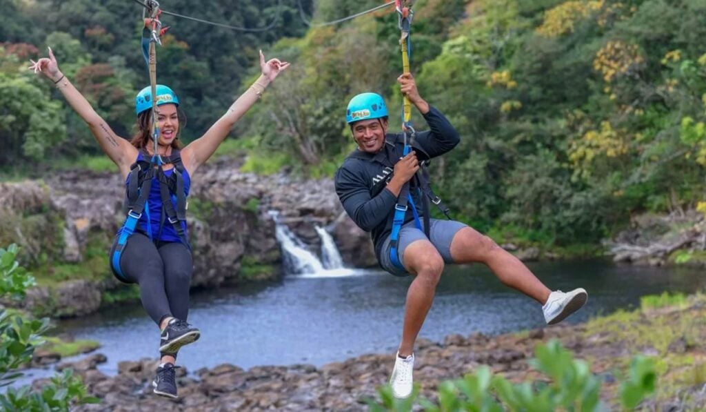 Here, you can enjoy stunning views of Umauma Falls from the designated viewing area, perfect for capturing beautiful photos. Four of their nine ziplines are dual lines, so get ready to race a friend or family member through paradise. It adds a fun, competitive element to the tour and is perfect for sharing the excitement with a loved one. The course extends for nearly two miles of zipping, with speeds reaching up to 65 mph.